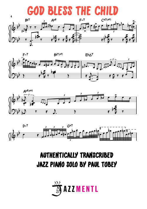 This transcription of “God Bless the Child” is more than just a piece of sheet music; it’s a window into the mind of a true jazz professional. Pianists looking to model their playing after the greats will find a wealth of techniques and ideas to explore. The combination of gospel-inspired chords, bluesy flair, and intricate improvisational lines makes this arrangement both a challenge and a joy to play.